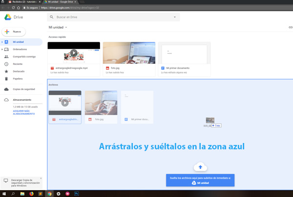 A continuación, verás cómo subir un archivo a Google Drive de forma sencilla. Simplemente arrastra el documento y suéltalo dentro de la aplicación.