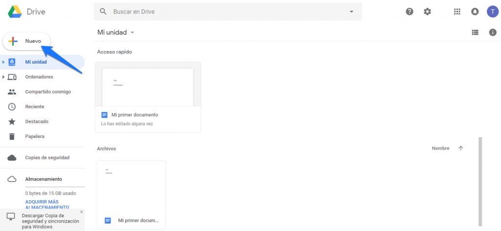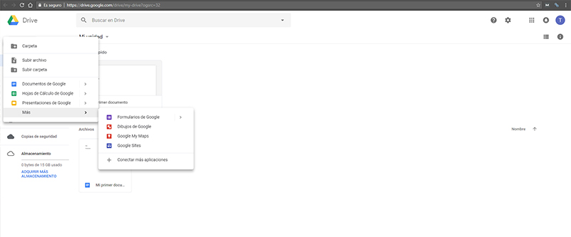 La pregunta que te harás ahora es “bueno ¿y cómo organizo mis archivos de Google Drive una vez están creados? Lo veremos un poco más abajo en la sección creada para ello.