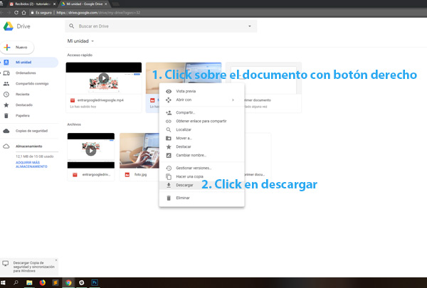 Cómo descargar archivos o carpetas desde Google Drive